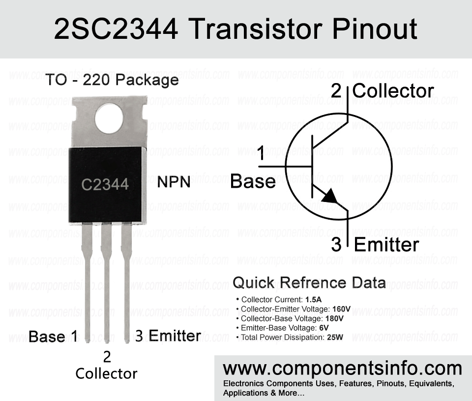 This post covers 2SC2344 transistor pinout, equivalents, uses, features, applications, and other details such as where and how to use the transistor, absolute maximum ratings, and more.