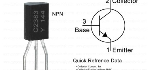 C828 is a BJT transistor that can be used for any general purpose requirements. The transistor can be as a switch and also as an amplifier. When using as a switch it can handle load of upto 100mA. 100mA is quite fair amount of current when driving other components in an electronic circuit. On the other hand if used as an amplifier it can deliver 400mW and the maximum DC current gain value is 520. It is available in different DC gain values which can be identified by looking at the last alphabet after the transistor number. If the last alphabet is “Q” the tranisistor gain will be 130 to 260, if “R” the gain will be 180 to 360 and if “S” then the gain will be 260 to 520, therefore you can choose it according to your requirements.